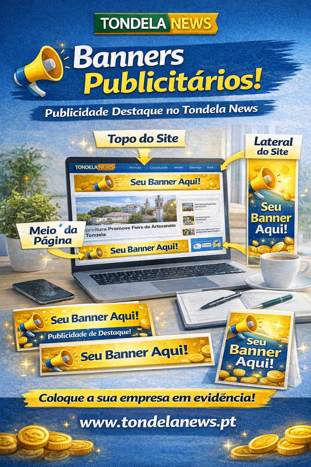 O banner publicitário coloca a sua empresa em destaque no Tondela News, aparecendo para todos os visitantes do site. É uma divulgação fixa, simples e eficaz para aumentar a visibilidade do seu negócio na região